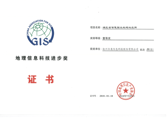• 地理信息科技進步獎---湖北省智慧國土構(gòu)建與應(yīng)用一等獎